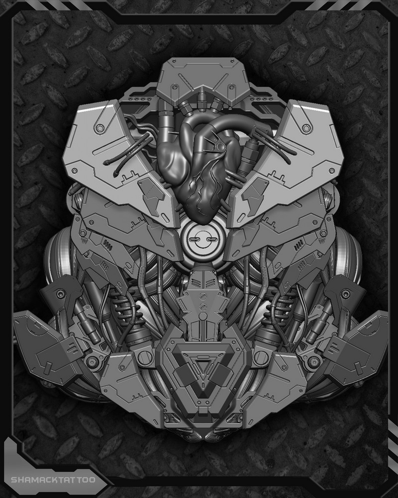 I’m Przemyslaw ‘Shamack’ Malachowski, but most people know me as Shamack. My passion is transforming ideas into living art through tattooing and 3D design. Using ZBrush, I sculpt each project to follow the body’s natural form — blending realism, biomechanics, and creativity to make every piece truly unique.